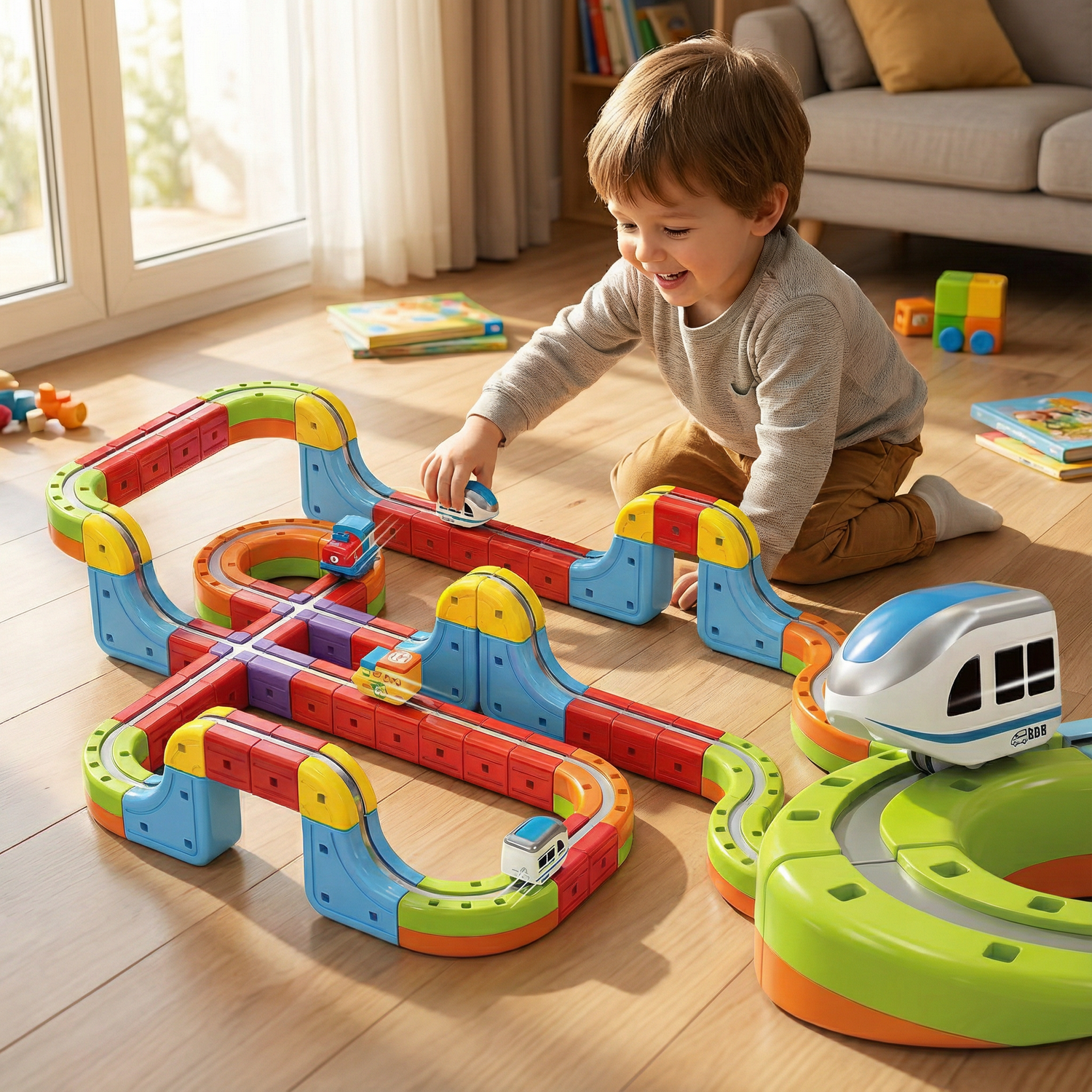 "Fácil de montar y muy divertido" Pensé que sería complicado, pero mi hija de 6 años montó el circuito ella sola enseguida. Le encanta apagar la luz para ver cómo brilla el tren mientras corre.